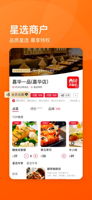 饿了么星选是饿了么旗下严选商家和美食、秉持用户体验至上的高端外卖及生活服务平台。 一个完美主义者眼中的外卖服务是怎样的?如何让外卖吃起来更「讲究」?饿了么星选带你探索一份外卖品质和服务的上限! 不管你是办公室老饕还是快乐吃货,对自己的工作有要求,对生活有追求,对美食有鉴赏力的你,一定都会被这个「超懂外卖的美食 APP」所俘获。 应用介绍 【外卖新用户福利】新用户最高立减17元。 【不是简单的外卖】超市购物、小吃茶点、水果生鲜、鲜花蛋糕、日常药品、万能跑腿立马送到家。 【全方位服务】定位周边美食,足不出户满足吃货的一切遐想。 中餐、西餐、快餐、简餐、湘菜、川菜、粤菜、浙菜、鲁菜、苏菜、闽菜…