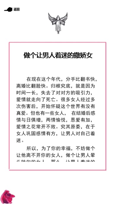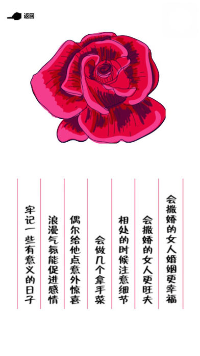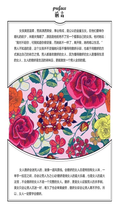 男人来自火星,女人来自金星? 还这么想就out了,不是无法沟通,而是你从来就没用对方法。 懂得撒娇的女人是懂得生活的女人,做事都得讲方法,更要讲技巧,撒娇其实也是技术活,更关系着个人幸福,当然也得讲方法。 如果你能撒娇得法,将娇撒得五彩斑斓,恰如其分,那么,你一定是最幸福的女人。 成为会撒娇的女人吧! 我们细致入微的剖析了恋爱中相处的复杂心理,从“女人会撒娇,魅力四处飘”;“女人会撒娇,男人的心肝宝”;“女人会撒娇,薪职步步高”;“女人会撒娇,家庭矛盾少”这四个方面出发,详细描写了女人会撒娇所带来的种种好处,并且手把手教你该如何做一个成功的撒娇好命女。 会撒娇的女人最美丽,一举手一投足之间,让男人心动不已。做事都得讲方法,更要讲技巧,撒娇其实也是技术活,更关系着个人幸福,当然也得讲方法。如果你能撒娇得法,将娇撒得五彩斑斓,恰如其分,那么,你一定是最幸福的女人。 女人们,为了快乐和幸福,将撒娇进行到底吧! 【应用特色】 四大女人撒娇大绝招 精美插图,感受最甜美女人 精致排版,视频点击,章节连续跳转 最新最炫的交互式立体阅读体验 【用户评价】 爱是一种需要学习和不断练习的技能,看了这个应用后,感觉懂得了很多以前想不明白的事,爱情是要靠保养的。 ——蝶舞 真是大开眼界了,原来撒娇也这么讲究,撒娇的时间、空间、技巧、手段,我去,一种看甄嬛后宫的即视感。 ——卿酒酒 现在就决定抛开以前固有的爱情模式,吸取以前的失败教训,迎接美好爱情的到来! ——Serena 【关于我们】 我们的理念是“非酷不能读”,致力于为广大朋友提供更多更好的新一代精品应用! PS:在搜索框里面输入“xxt”可以检索到应用航母(AppCarrier)的所有产品。 【欢迎联系】 邮箱:appcarrier@126.com 微博:http://weibo.com/yidongshuyouhui