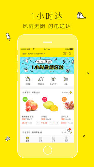 闪电购未来超市,商品精心推荐,购物流程简单,1小时送货上门,售后保障也很靠谱! 赖床睡过头只能飞奔去打卡,一次次与早餐君擦肩而过?! 下午犯困嘴巴寂寞工作没激情,刮风下雨谁要下来,只能忍?! 夜宵唯有炸鸡+啤酒才完美,可是夜黑风高伦家怕怎么办?! 想吃香蕉、想吃梨、还想吃榴莲,好重还要自己扛回家,手臂又粗了?! 那就闪电购吧!吃货的贴心管家——让您早餐有温度,工作有能量,夜宵更完美,当然还有回归优雅小公举!为您省钱省力更省时间! 1、 闪电拼团——新鲜水果,进口零食,精选好货轮番来袭! 2、一站购物——全城精选新奇商品随时随地随心购,送货上门! 3、代买早餐——肯德基、麦当劳、Famil…