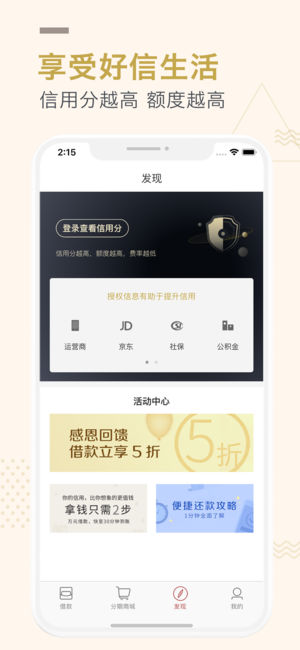 【信用钱包】现金贷平台及白条购物平台 凭运营商简单认证即可借钱。快至10分钟到账,操作简单,利率低。人工智能风控审批,速度又快又便捷。 主要解决信用人群日常生活资金周转需求。信用优质的用户无需任何抵押,即可快速实现信用“变现”,解决短期资金紧张的问题。 以借款为切入点,提供分期现金借款、分期代还信用卡账单等金融模式。面向22-60周岁人群提供借钱放款服务,为全中国白领人群提供专业分期贷款服务。一个app,就可以快速借钱,解决贷款用钱需求,让您即刻有钱花。 【借款快速】在线申请,快至30分钟放款! 【借钱简单】按步骤提交资料,快速审核,快速到账! 【额度灵活】大小额…