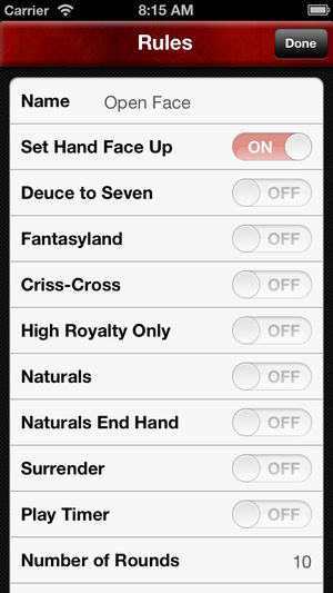 每个月超过百万手的牌局!现在赶快下载这个目前席卷全世界扑克界, 最流行的开牌 13 张 (open face Chinese poker)。开牌13张应用软件的细致的设计提供了玩家可以自由客制化的游戏经验而且也是唯一一个有提供“梦幻岛"(Fantasy Land)还有“单挑时每位玩家可以同时玩两副牌”(Criss-Cross) 功能的app. 这个2-4人的游戏跟传统13张 一样, 每个玩家都需要用13张牌组合出三组牌。 在开牌13张中, 每位玩家一开始会有5张牌然后每位玩家轮流一次抽一张直到13张牌完成为止。 当你的牌组合出像是”同花“, ”顺子“, ”葫芦“, 还有 ”四条“这类的奖金…