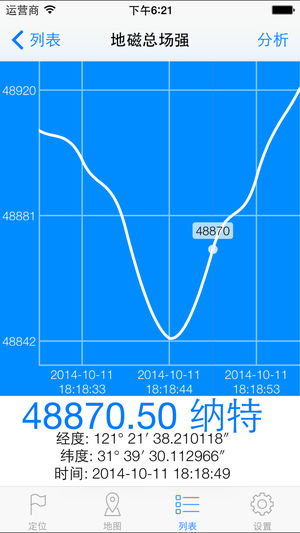 一个简洁易用的地磁与位置记录工具。 在行进过程中,可以随时记录当前位置的地磁要素、经度、纬度、海拔和地址信息,并添加照片。包括照片在内所有数据均可导出,并能在Google Earth等后处理软件中打开。 位置信息所采用WGS84坐标系,其精度取决于位置信息采集环境和手机配置。 各个地磁要素,包括磁偏角、格网磁差、磁倾角、总场强和各个分量等,均采用全球地磁模型WMM和全球重力场模型EGM96(WGS84)计算得到。 所有信息仅供参考。