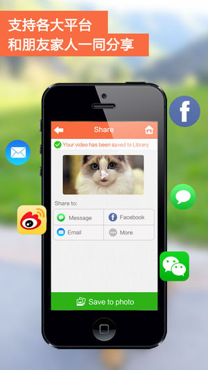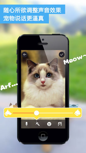 只要一张照片就能让你家萌宠开口说话的神奇应用!(前7天限免中) 你是否想象过自家汪星人或喵星开口说话的样子?现在只需一张它的正面照,标记好眼睛,嘴巴和下巴,并且录下你想让它说的话,它就能复述你说的话了!效果栩栩如生哦( ฅ´ω`ฅ) 不服来下载嘛~ 接下来就是让你的宠物替你来吐槽,唱歌,传情达意的时刻了! #功能介绍# ◆宠物说话的视频支持分享到新浪微博,朋友圈,QQ空间等各大社交媒体,和亲朋好友一起来分享你和宠物的温(dou)馨(bi)时刻吧!~ ◆内置各种萌萌哒,贱贱哒动态表情,让视频更加生动有趣,内涵丰富,嗯! ◆可以选择各种动态场景,为你营造借宠物浪漫表白或节日祝福的温馨氛围~打…