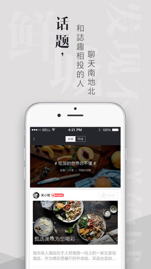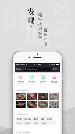 【鲜城-高品质城市生活指南】 鲜城是微博和新浪联合打造的同城吃喝玩乐精品推荐应用,由上千美食达人和生活家拼命发现,认真体验,为您客观推荐同城最具特色的美食佳肴、周边游玩,团购优惠,购物折扣、休闲娱乐、等吃喝玩乐资讯,带你发现不一样的城市,体验不一样的生活。鲜城作为目前中国最大的本地生活推荐类应用,聚焦精品餐厅推荐,现已覆盖全国44个城市,包括:北京、广州、上海、香港、澳门、天津、成都、重庆、杭州、南京、深圳、郑州、长沙、长春、大连、福州、贵阳、合肥、哈尔滨、海口、济南、九江、昆明、宁波、南昌、南宁、青岛、苏州、石家庄、沈阳、无锡、武汉、厦门、西安、兰州、拉萨、三亚、乌鲁木齐、呼和浩特、洛阳、烟…