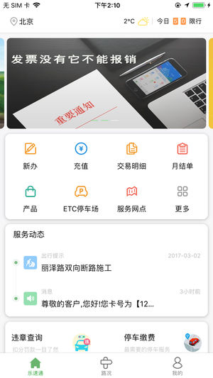 “乐速通”是一款由京津两地ETC发行方践行“京津冀一体化交通先行”理念,整合资源,优势互补,致力于向用户提供线上线下一体化服务的移动APP。 北京ETC用户主要支持功能: 【新办】含速通卡、北京银行账户绑定签约、华夏银行账户绑定签约、已有银行联名卡申请电子标签及激活写卡的在线新办业务。在线提交验证电子资料,线上完成签约支付,一键轻松预约,可享北京市域内上门安装服务; 【充值】速通卡在线充值,多种支付方式可供选择,省时省力更快捷; 【月结单】一键了解账户信息,通行明细轻松查询; 【ETC停车】ETC停车场一键导航,进出车场不停车; 【卡延期】在线延期更方便,速通卡延长十年只需三秒; 【预挂失…