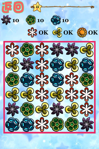 想成为一个成功的采花贼吗?想的话那就在规定的时间内采集到指定数量的花儿吧!同一种花朵相邻并且数量超过3个就可以摘取了!加油!