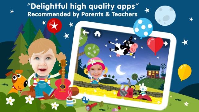 Play with cute farm animals, sing along to Old MacDonald and develop preschool literacy skills. Kids love being the farmer & role-playing in this classic nursery rhyme. Bounce in the squelchy mud with the pigs, count the hen’s eggs, collect the apples, drink milkshakes, play Peekaboo in the stables…