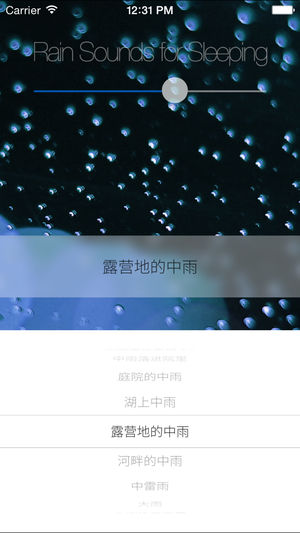 #关于1.1更新闪退问题:请删除老版本重新安装即可。 #限时冰点特价1元!请速下载!机不可失!# #我非常喜欢下雨时睡觉,所以我写了这个软件——一款下雨声播放器。它可以帮助你睡眠、让小孩安静下来或者放松心情、冥想等用途。 #它带有28条自然录制的高品质音轨, 有小雨、中雨、大雨、暴风雨等, 经过精心编辑,可以最长连续播放24小时。 #带有一个24小时倒计时器,可以设定1分~24小时的倒计时,计时结束时自动停止播放。 #简洁漂亮的界面设计,中文文字使用了最新最美的思源字体。 #28条高品质自然录制音轨,都可以连续播放24小时: 1. 小雨 2. 庭院的小雨 3. 小雨在秋夜 4. 夏夜的…