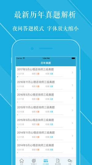 心理咨询师三级考试2017通关神器! 最新押题+章节、专项练习+历年真题(含2017年5月真题)+考点解析 一款五星级评价的心理咨询师三级APP,好评如潮!题库含解析,通关无忧! 分为不同题型,单选、多选、案列技能选择、案例简答题。为考试的提供了充分的复习准备,可随时随地学习练习,有效帮助顺利通过考试,学习知识通过考试必备神器! 【题库介绍】 历年真题 2017年5月心理咨询师三级真题及解析 2016年11月心理咨询师三级真题及解析 2016年5月心理咨询师三级真题及解析 2015年11月心理咨询师三级真题及解析 2015年5月心理咨询师三级真题及解析 2014年11月心理咨询师三级真…