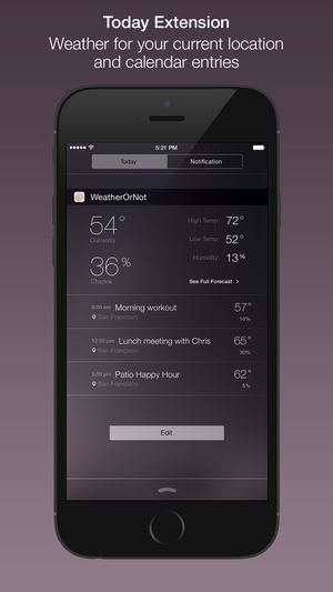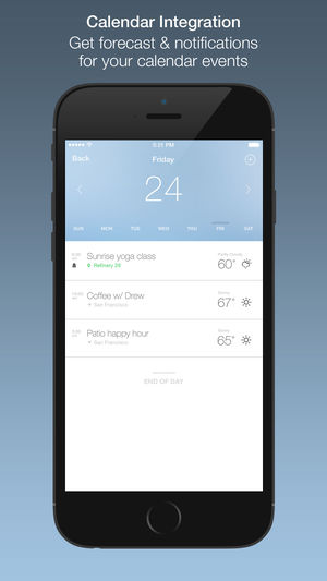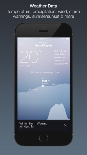 Graph the weather and see the weather for your calendar events. Use a 7 day scrollable minute-by-minute graph of temp, feels like, wind, precip, humidity, etc. It's easier to understand weather and it's beautiful. (Weather data by forecast.io) Venture Beat: Top 15 designed app of the year Busines…