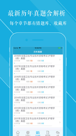 本软件为初级护师考试的软件,精心准备了2019年最新考试题库。(共计15000多道)分为不同题型,并有答案解析。以及高频考点(2300个考点),为考试的提供了充分的复习准备,可随时随地学习练习,有效帮助顺利通过考试,学习知识通过考试必备神器! 【功能介绍】 1、专项练习:基础知识、相关专业知识、专业知识、专业实践能力等科目最新考题A1/A2、A3/A4、B型题,并有答案解析。 2、章节练习:按照章节划分的最新考题,含解析。 2、历年真题:最新2011年~2018年历年真题含解析。 3、模拟押题:最新模拟押题,检测复习成果。 4、必考考点:高频考点必背知识点,包括《基础护理学》、《外科护理…