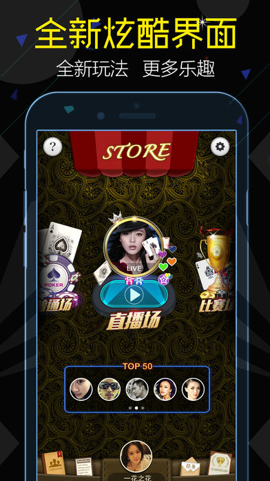 【全球首款真正的美女主播德州扑克】真人美女荷官直播,简单极致的德州体验,和心仪的主播互动游戏。“TA来了,你在哪?” 【真人美女主播+德州扑克】 和美女主播一起玩德州,性感荷官、白富美、小清新、高富帅等着你! 【精致优雅的界面】 颠覆传统的竖版界面,单手操作轻松方便,华丽界面让您如临真实的德州赌场! 【喜欢就要打赏】 手气好记得和主播一起分享,爱“TA”就要赏给“TA,缤纷礼物赏不停。谁的爱多一点,奖赏榜上一目了然! 【停不下来的奖品】 完全免费,筹码天天送!还有大量奖品等您拿! 【私密组局随心开】 亲朋好友一起玩,还能直播聊天与互动,更随心更私密! 【丰富的社交系统】 赏金排行榜,与好友比拼牌技和财富;丰富的礼物互动,玩牌交友两不误! 【全新比赛系统系统】 全新比赛系统,坐满即玩(SNG);多桌锦标赛,争夺冠军(MTT) 【更多惊奇玩法】 水果机、猜拳、足球竞猜……更多有趣刺激的活动等你来发现! QQ群:232091902 客服QQ:447672656