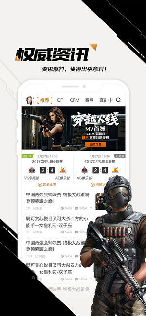 《掌上穿越火线》由腾讯公司出品,官方认证竞技类游戏社区APP,覆盖CFIP下的所有游戏,为亿万CF玩家提供游戏资讯、游戏社区、赛事直播、游戏数据查询及分享等特色服务。 【产品特色】 一、权威资讯:资讯爆料,快得出乎意料! 二、动态社区:4亿CFer都听你说,在这里说! 三、海量福利:专属特权活动,让你心动! 四、荣誉战绩:炫出实力,专业数据权威助力!