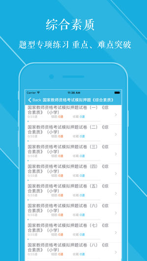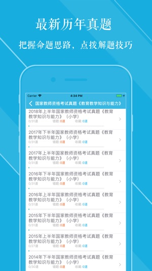 国家教师资格考试(小学)2018通关神器! 最新押题(30套)+历年真题(22套) 一款五星级评价的APP,通关无忧! 全科目《综合素质》《教育教学知识与能力》为国家教师资格考试(小学)考试量身打造,助您顺利通过考试。 【题库内容】 押题 2018年国家教师资格考试模拟押题(一)《教育教学知识与能力》 2018年国家教师资格考试模拟押题(二)《教育教学知识与能力》 2018年国家教师资格考试模拟押题(三)《教育教学知识与能力》 2018 年国家教师资格考试模拟押题(四)《教育教学知识与能力》 2018年国家教师资格考试模拟押题(五)《教育教学知识与能力》 2018年国家教师资格考试模拟押题(…