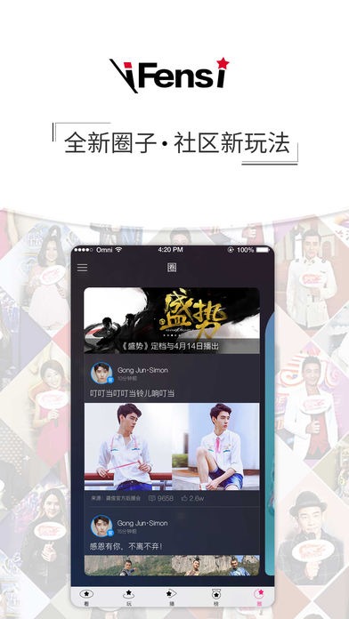粉丝网APP-追星族应援明星必备,聚合新鲜娱乐八卦、明星新闻,二次元漫画,小说等,及时发布明星公告,方便粉丝快速了解明星动态、明星行程;加入粉丝团,追星族可以轻松参与爱豆应援,与偶像亲密接触! 主要功能: 【看】-汇集娱乐八卦,明星新闻,明星行程尽在掌握! 【玩】-粉丝应援,现场参加明星秀,为偶像加油助威! 【榜】-明星排行榜,为爱豆送“红星”,帮TA打榜上头条! 【圈】-死忠铁粉儿的集结地,让我们一起应援追星聊八卦! 韩国爱豆应援团: BIGBANG,宋仲基,宋慧乔,李钟硕,张根硕,金宇彬,金秀贤,VIXX,CNBLUE,IU,黄致列,金必,EXO,宋茜,权志龙,李敏镐⋯⋯ 华语明星应援团: 邓超,李晨,鹿晗,吴亦凡,陈赫,张艺兴,黄子韬,赵丽颖,马天宇,杨洋,杨紫,李易峰,杨幂,陈伟霆,黄晓明,TFBoys,周杰伦,王凯,刘涛,黄礼格,穆婷婷,张天爱,宋祖儿,许魏洲,杨洋,王青⋯⋯ 更多粉丝应援团等你来!!! 对于产品有任何疑问和建议,请联系我们 官网:http://www.ifensi.com/ 新浪微博:粉丝网官方微博 微信公众账号:粉丝网iFensi
