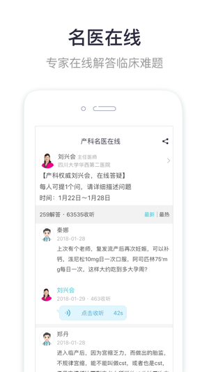 “呗呗医生” 以提升医生执业水平为目标,专注继续医学教育,打造妇产儿科医生的专属学习平台。 【直播】全国名医每晚在线分享妇、产、儿科知识,随堂解答问题。 【视频】超3000个医学视频,随到随学轻松get!各种技能。 【医声】十五万同行在线,分享经验、话题讨论、病例共享。 【名医在线】大咖在线免费解答临床中遇到的各种难题。