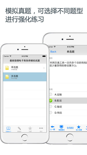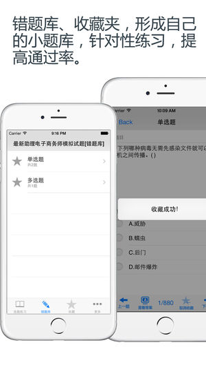 本软件为助理电子商务师资格考试题库的软件,精心准备了2016年最新考试题库。(共计1500多道)分为不同题型,单选题和多选题。为考试的提供了充分的复习准备,可随时随地学习练习,有效帮助顺利通过考试,学习知识通过考试必备神器! 助理电子商务师是中华人民共和国工业和信息化部颁发的"电子商务"专业资格,属于国家职业资格三级 【功能介绍】 1、模拟考试:模拟考试试题包含最新考题 2、错题库:可自动加练习过程中错题加入收藏,以便反复练习。 3、收藏夹:可在练习过程中自行收录题目到收藏夹,形成自己的小题库,针对性练习,提高通过率。 4、安装后可离线浏览,不用联网也可以浏览,速度快,无广告。…