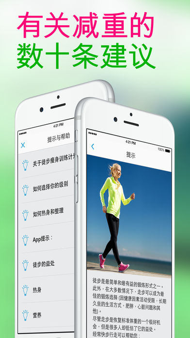 现在您走步就会让您减肥瘦身。通过组合走步和加速技术 ,在更短的时间内取得最佳的效果。 App Store 中无与伦比的一款! ================ 训练计划 - 专为瘦身而设计的独特的间歇训练方案; - 现成的3 个月训练计划,每周 5-7 天; - 3种备选方案以供不同级别使用:对于那些不经常健身和那些身体健康而又喜欢步行的人士都很理想 ; - 适合户外以及室内锻炼; - 支持 Apple Watch。 轻松健身模式 - GPS行走地图; - 每段训练都有语音提示; - 从apps直接轻松访问音乐,有声读物和播客 ; - 人工编辑训练计划。 根据运动节奏精选音乐 - 在应用内部获取最棒的无限运动音乐资源; - 音乐韵律能够适应你的运动节奏; - 我们每天更新最强DJ的最新混音曲目; - 包括各种流派,从古典老歌到摇滚、嘻哈及R&B; - 方便的搜索和推荐功能会帮你找到最适合的音乐。 保持动力 - 数十条有关徒步,健康营养和生活方式的秘诀; - 详细的数据统计; - 苹果健康(Apple Health )应用同步; - 和Runkeeper、Fitbit、MapMyRun整合; - 取得成绩并和Facebook及Twitter的朋友分享成果。 ==================== 如您选择升级至Premium金色会员,款项将在您确认购买时在您的iTunes账号中被扣除。您按月订购的价格为每月$9.99,年度订购价格为每年$39.99(价格可能随着所处的方位有不同)。如果您不在当前订购周期结束前提前至少24小时取消订购,您的订购服务将会自动继续,并且,取消当前有效的订购是不允许的。 在您购买之后,自动续费可以在您iTunes里的账号设置处进行关闭。在购买之后,您也可以在账号设置处对您的订购进行管理。 隐私政策: http://redrockapps.com/privacy-policy 使用条款: http://redrockapps.com/terms-and-conditions-of-use 注意:在后台持续运行GPS走步会显著降低电池寿命。 此App的开发仅为参考用途。在开始任何健身计划前,您一定要首先咨询您的医生。 关注我们! 在Facebook: https://www.facebook.com/RedRockApps 在Twitter: @RedRockApps 在Instagram: @RedRockApps