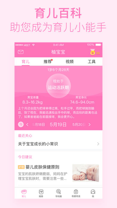 【原柚宝宝孕育正式更名为柚宝宝】 求好孕,当妈咪,就用柚宝宝!千万妈妈的口碑推荐! 权威的孕期管理工具,专业的萌宝成长助手,贴心的怀孕指南,帮你搞定有宝宝之后的那些事儿! ● 柚宝宝,孕妈备孕神器 App Store健康榜备受准妈妈青睐的孕期软件,超火爆的孕妈交流社区,分享宝贝成长的温馨瞬间。 ● 科学涨姿势,轻松做好妈 从怀孕到育儿,科学知识每天播报,让你秒变育儿专家,助您成为内涵辣妈! ● 超人气圈子,方便妈妈交流 孕妈、辣妈们都爱的交流社区!求好孕、囤好货、涨姿势、学经验就往这里跑! #孕期监测,宝宝动态随时看# 3D可视,模拟B超图像,陪伴宝贝成长 #亲子相册,辣妈必备影像神器# 一键上传,全家共享,帮宝宝从小打造私密亲友圈 #母婴商城,宝妈用品放心购# 妈妈囤每天上新,物美齐全的母婴用品,健康方便又放心。 #辣妈驾到,萌宝成长柚宝帮# 宝妈的新手上路手册,了解宝宝发育情况和每日注意事项 #宝妈学堂,宝妈知识快乐学# 和千万宝妈一起分享关于宝宝的一切 #实用工具,孕妈必备放心用# 营养食谱孕期指南,产检提醒数据解释 柚宝宝孕育为什么最贴心? 专业:关注宝宝成长,宝妈知识天天报; 安心:从怀孕到育儿,贴心关怀伴你全程; 有爱:千万辣妈同交流,孕期育儿不孤单; 权威:涵盖孕育百科,让你育儿无忧! 最贴心的妈咪应用,还不火速下载? 有宝宝,就用柚宝宝!