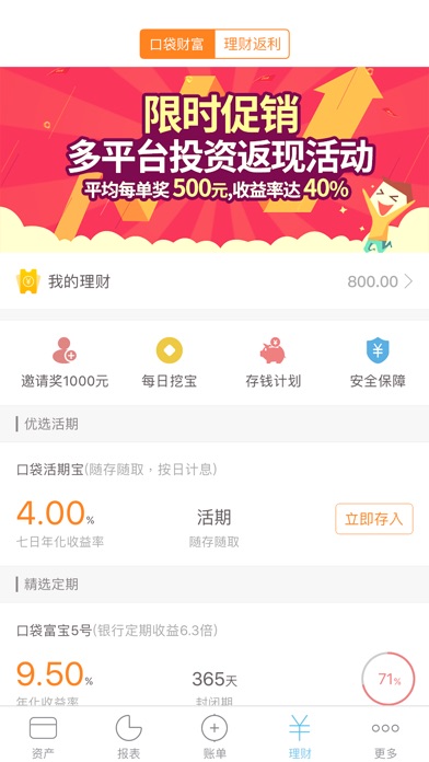 • 苹果商店热门免费财务记账APP • 新浪、搜狐、36氪、今日头条等知名媒体报道 • 知乎、豆瓣、简书、最美应用用户多次推荐 口袋记账——懂理财,爱生活 你的问题: 1)想知道自己钱花哪儿了? 2)想存点钱却总是月月光? 3)想记录公司报销、各种P2P购买记录? 4)想找最简单的理财免费参加各种理财达人的微信课程? 我可以帮你: 【钱都花哪儿了】 1、2秒随手记账,支持信用卡账单、支付宝账单导入; 2、自动生成收支统计图、年收支曲线图等报表,可导出excel; 3、支持多账本:分账本记录公司账、装修、旅游、报销、结婚等; 4、支持借条欠条管理,详细记录接入借出记录,人情往来不马虎; 5、提供资产管理,随时展示信用卡、支付宝等账户余额情况与互联网理财产品购买到期记录; 【存钱理财赚返利】 1、可自定义设置个人存钱计划,每次存一点,攒钱无压力; 2、支持理财产品购买,新手专享7天12%收益+205元红包+0.5%加息券; 3、提供各种理财返利任务,轻松月入1000+ 如果关于产品你有任何疑问或者建议,都可以直接通过下列方式联系我们,和我们一起优化产品! 联系我们: 软件内反馈:更多-用户反馈 反馈邮箱:kdjz@qeeniao.com 微信公众号:kdjz114 联系电话:400-893-7707(工作日9:00~22:00)