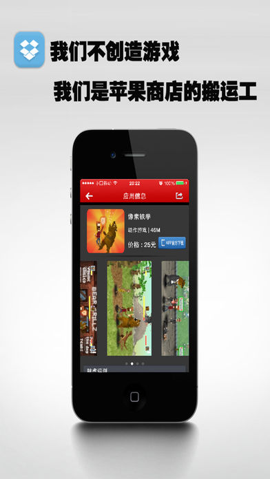 《爱像素》应用是App商店中唯一的一个给您推荐好玩像素游戏的应用,它就像一个像素游戏大宝库,各种精彩像素游戏等你发掘! ======简介====== 《爱像素》,最方便实用的像素游戏推荐,只要App商店中一出现好玩的像素游戏,我们会第一时间通知您。 在这里,每天您都会看到很多精品像素游戏应用,它们将在不同的板块呈现给大家。它们都是编辑和像素爱好者们精挑细选的成果。 《爱像素》的宗旨是不优秀的像素游戏,我们不推荐。我们每天都会给大家发好应用的推送信息。 《爱像素》不单单是一款推荐应用。它还有独一无二的《胖虎评测》板块,这是其它推荐类应用所不具备的。胖虎是我们公司的一名编辑,他酷爱像素游戏,市面上的任何像素游戏都不会放过(从小受小霸王游戏机和任天堂的影响),并且胖虎兄弟的评测内容非常棒,深得广大人民群众的喜爱,我向毛主席保证,我说的是真的。 ======特色====== 明星功能简介: √ 像素游戏应用分类众多而且详细,你可以选择你喜爱的分类查看应用 √ 编辑们每周都会推荐精品应用供你选择 √ 胖虎兄弟会为每个像素游戏应用进行精彩的评测 √ 喜欢的应用可以通过微博,微信和邮件分享,让更多人看到 √ 最大优化内存、容量和流量 √ 个性化的分类查询标签 √ 跳转到App Store进行下载,我们不制作像素游戏,我们是App商店的搬运工 ======联系我们====== 《爱像素》官方网站:http://www.52sky.cn/ 《爱像素》商务合作QQ:16996716 《爱像素》欢迎你的加入,你的支持就是对我们的肯定,我们会继续加油的!