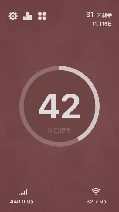 实时监控网络数据流量,妈妈再也不担心我的流量超出套餐了! 功能 & 特色: - 实时监控蜂窝网络和 Wi-Fi 数据流量 - 网速监控 - 查看流量历史使用情况 - 进度条显示使用情况 - 结算日自动重置使用量 - 支持多种数据套餐周期(每月、每周、每日等) - 更换通知中心 widget 样式 - 多套精美的主题 - 支持 Apple Watch 如何提高统计准确性: 1. 将 DataFlow 添加到通知中心 2. 允许 DataFlow 使用后台刷新 3. 保持 DataFlow 在后台运行(不要双击 Home 键上滑关闭) 4. 经常打开 DataFlow 我们的作品: - AirLaunch: 通知中心启动器 - DataFlow: 实时监控手机流量 - Fancydays: 倒数日期 - AnyRate: 汇率换算器