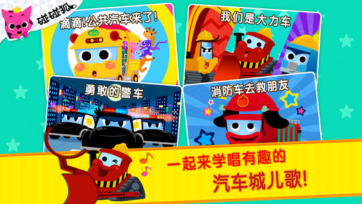 欢迎来到【碰碰狐汽车城】! 在这里能看孩子们最喜欢的多种多样的汽车! 勇敢的警车、消防车,友好的校车和强大的推土机等等! 一边唱歌和玩游戏,一边学习它们的名字和做了什么。 特点 1. 让宝宝快乐的汽车儿歌7首 - 熟悉的旋律,包括该知道的汽车信息! 2. 滴滴帮帮!开车游戏 - 宝宝自己可以开小车、警车、推土机等等 3. 帮宝宝会更聪明的小游戏 - 一边玩儿游戏,一边学习汽车做的事情 4. 有趣的涂色游戏! - 用多种多样的涂色用具涂色汽车! 5. 学习汽车名字! - 一边玩儿游戏,一边学习汽车的名字和特点 请快来看看碰碰狐汽车城和享受多大的快乐 !