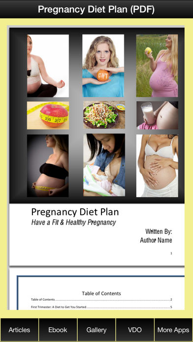 Highlight Feature of Pregnancy Diet Plan: - Best Pregnancy Diet Articles. - Pregnancy Diet Plan Ebook (Value:27$). - Pregnancy Diet Gallery (Photo & Quotes). - Pregnancy Diet Video - More Pregnancy Apps - Share Pregnancy Diet Plan via Email. And Here's what you'll discover in Pregnancy Diet Plan: - First Trimester: A Diet to Get You Started List of Foods Meal Plans First Month Second Month Third Month - Second Trimester: A Diet for Those Cravings List of Foods Meal Plans Fourth Month Fifth Month Sixth Month - Third Trimester: A Diet to Keep Your Energy High List of Foods Meal Plans Seventh Month Eighth Month Ninth Month - Exercising While Pregnant Some Precautions Best Forms of Exercise in Pregnancy Walking, Jogging or Running Swimming Pilate Yoga Weight Training Cycling - List of Healthy & Unhealthy Foods Omega-3 Rich Fish Milk - 30 Foods to Avoid. - How to Breast Feed your Child. - Breast Feeding
