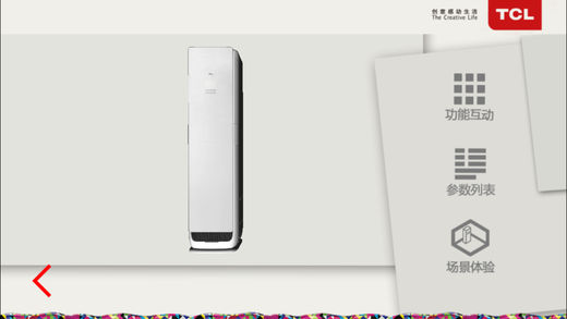 软件应用中全面的展示产品,包含产品整体的品质力、产品细节、产品参数、及其场景体验等内容。让看到应用的用户能够全面的了解产品本身,感受到TCL空调的优质产品。 该应用是一个AR(增强现实)的应用,在功能互动和场景体验中需要开启手机的摄像头对特定的图像进行扫描识别和互动操作。 请下载以下图片进行识别 功能互动模块请下载以下图片: http://www.eeheo.com/download/tcl/tianji.jpg http://www.eeheo.com/download/tcl/mengxiang.jpg 场景体验模块请下载以下图片: http://www.eeheo.com/download/tcl/bai.jpg