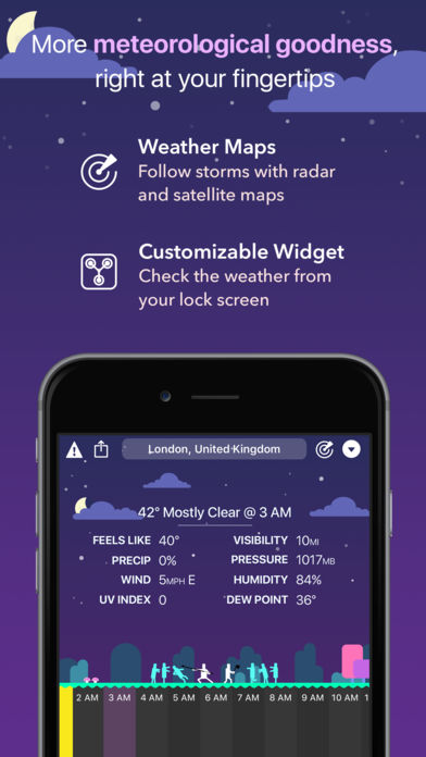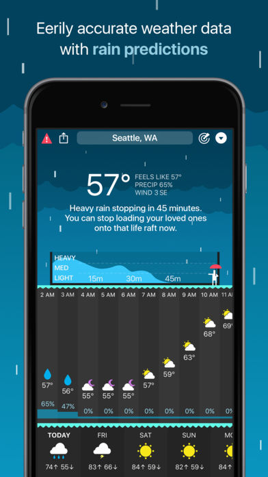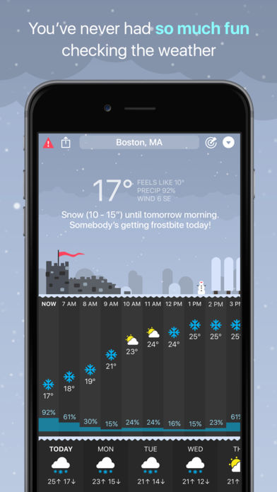 CARROT Weather is a crazy-powerful weather app that delivers hilariously twisted forecasts. ** Winner of Apple’s Editor’s Choice award on the Mac and featured by The New York Times, Good Morning America, CNN, The Wall Street Journal, Wired, & more! ** Overflowing with Personality From spooky fog to torrential downpours, CARROT’s dialogue, characters, and scenery change in… “unexpected” ways. You’ll actually be looking forward to a blizzard just to see what CARROT has in store for you! Accurate and Detailed Dark Sky’s super accurate weather data gives you quick access to your current, hourly, and daily forecasts. Or just tap anywhere for more meteorological goodness. (Available worldwide.) Rain/Snow Prediction If the rain gods are mad at you, CARROT will show you a short-term forecast that tells you right down to the minute when it’s going to start precipitating. (Available only in the US, UK, Ireland, and parts of Canada. Everything else works worldwide.) Notifications If you own an Apple Watch, you can purchase the premium upgrade to receive precipitation and severe weather alerts, as well as reports on the weather for the upcoming day. Or, if you own CARROT Weather for Mac, CARROT can forward notifications to your iOS device! (Note: Precipitation and severe weather alerts are only available in the US, UK, Ireland, and parts of Canada. Daily reports work worldwide.) Radar Watch in awe as the next big storm bears down on your house with CARROT’s trusty radar (for the U.S.) and satellite (for the rest of the world) maps. Customization Want to disable CARROT's personality? You can turn her into a 100% professional weather app! And Premium Club members can customize every last data point that CARROT displays to show the weather data that you care about. Time Machine View the weather for any location up to 70 years in the past or 10 years in the future. DeLorean not required! Augmented Reality Use ARKit to CARROT into your world. Just don't poke her ocular sensor. Secret Locations Follow clues to hunt down 15+ secret locations - like the Moon, the Pyramids, and Chernobyl. Apple Watch In addition to a full weather app and notifications, you also get colorful complications for your watch face. (Note: Premium Club subscription required to unlock half-hourly data updates, notifications, and complication customization features.) Features: • Beautifully minimalist weather app • Dark Sky’s super accurate weather data • Weather Underground data source available as an upgrade • Notifications via CARROT Weather for Apple Watch or CARROT Weather for Mac • Radar and satellite maps • Apple Watch app with complications • Support for Celsius and metric measurements • Customizable widget with light and dark modes • 4,000+ lines of hilarious spoken dialogue • 20 secret locations Don’t make CARROT angry. Download her now! --- CARROT Weather uses auto-renewing subscriptions. A Premium Club subscription is available for $0.49USD per month or $3.49USD per year, and provides additional features like customization, an alternative weather data source, and Apple Watch background updates. An Ultrapremium Club subscription is also available for $1.49USD per month or $9.99USD per year, and provides Weather Underground data access for Apple Watch users. The subscription will be charged to your iTunes account at confirmation of purchase. Subscriptions will automatically renew at the end of your subscription period and will be charged through your iTunes account. Subscriptions renew automatically unless canceled at least 24 hours prior to the end of the current period. Your account will be charged for renewal within 24 hours prior to the end of the current period. You can turn off auto-renewal at any time from your iTunes account settings. Cancellation of the current active subscription period is not allowed. Terms of Use: http://support.meetcarrot.com/weather/terms.html Privacy Policy: http://support.meetcarrot.com/weather/privacypolicy.html