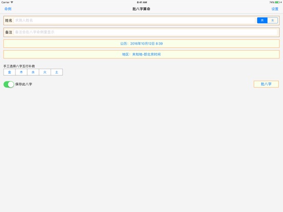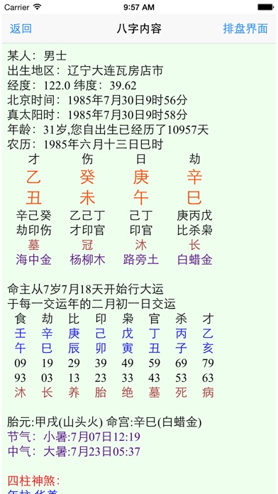 批八字算命,最传统、准确、详实的八字批命软件,适合IOS8.0及以上系统的IPHONE和IPD。批八字的内容有:八字大运、五行得分与喜用神、称骨论命、古诗词论命、穷通宝鉴和三命通会论命、终身卦、一生重大关口、鬼谷子论命、一掌经论命、日干论命、年月日时论命、后天补救、性格、婚姻、兄弟姐妹、子女、财运、功名事业、健康状况、祖业父母、80年流年运程。