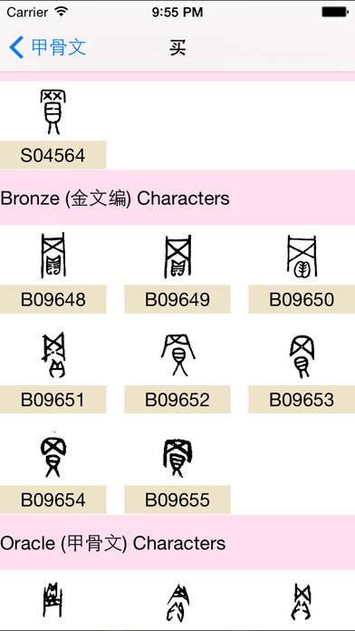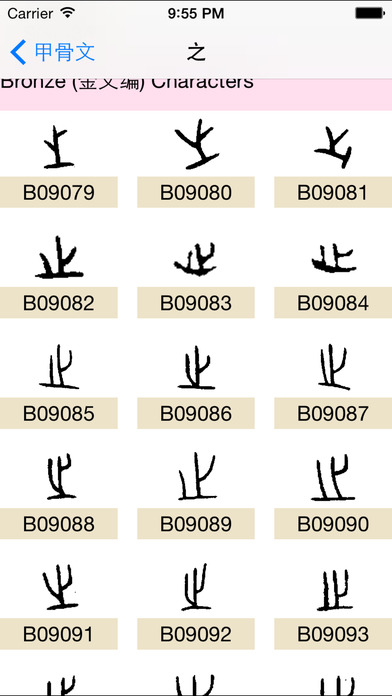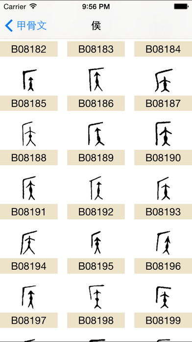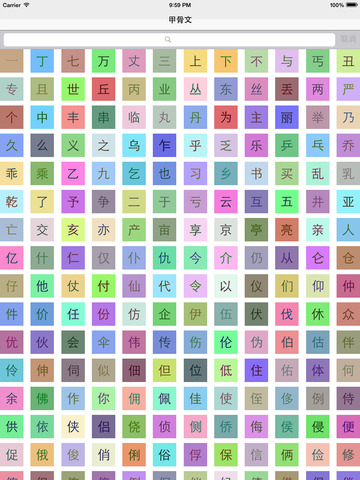 包括 汉字的简体字,繁体字,篆体,金文,甲骨文。通过字形了解汉字的演变。 甲骨 直到1895年才被发现.当我们说到甲骨 的时候, 我们指的是 动物甲龟的 前甲(胸甲骨)或者 牛的 肩胛骨(肩胛骨).商朝 的人会用锋利的工具在骨头或者 贝壳上刻上 卜辞, 然后将它们丢在火中观察它们是如何裂开的.通过这样的方法, 他们尝试预测命运.最先发现这些甲骨的19世纪的未开化中国人起初认为它们是龙的骨头, 于是他们将甲骨挖出来作为传统医药使用.甲骨上的书写笔迹很显然难以识别.过去的一百多年, 我们一直研究它们,将它们挖掘出来并且尝试着将他们组成整体.我们能够理解大概一 半的字符样例,换言之,我们能够理解大概95%的正文了. 甲骨文的特性有: 一,这些甲骨及龟胸甲骨全部来自于一个发掘点.如果不是由于这一个地点, 我们可能就没有直接的证据表明:商代的中国人已经有了读写能力.这些甲壳覆盖了从公元前 1300年到公元前1100年大概200年的历史.它的好处是,我们有少数的一些作者, 它们全部来自一个地点,并且在一个短的时期内延续. 这给了我们一个初步的信息, 我们至少能够讨论那个时间和地点的人们是如何书写的. 二,这些甲骨片真是非常杂乱.按照某些估算,总共发现了400,000个甲骨片. 几千个肩胛骨和骨头被重新拼合,成千上万的句子已经被研究分析了. 我已经重新编制了一个包含31,876个样例字符的数据库,它们代表了大概4000 个不同的字符,我们认为我们理解了其中的1500个到2000个.. 三,从诸如 dian 典 之类的字符分析来说,我们相信那时候的常见书写工具是狭 竹片条.我们所拥有的最早的真实的狭竹片是来自于公元前400年左右.因此到那个时间点 我们已经有了差不多1000年的汉字历史,我们可以据此证明书写早已存在,但是那时没有一个 单独的狭竹片条. 四,公元前1300年的字符也已经历了高度的抽象.当我们被告之它们表示的是什么 以及它们是如何被翻译的时候,它们看起来在绝大多数情况下都相当明显.不像埃及象形文字, 对于普通的观察者来说大多数字符代表的含义,不是非常明显.这表明了:书写系统已经存在了 很长一段时间. 人们相信口语是每次发展一点点的. 拥有10个单词的语言比没有单词的语言更有用. 拥有100个单词就更好了,其他类推.拥有书面文字的语言,从另一方面来说,无法表达至少 口语中的主体部分的一个书写系统实际上是没有价值的.想象一下某个书面语只能表达你交 流的概念中的一半内容.为什么还要费劲去学习它呢? 五,甲骨的目的是为了预测命运.甲骨上面书写了很多内容, 但是它就如同你在一个星占算命图上可能找到的词汇表一样.我们可以 假设他们拥有很多字符用于更多的日常生活中的事情,但是这些字符却从 来没有出现在甲骨上面.我们或许能从甲骨中提取出5000个字符,但是那个 时候可能使用了两倍的字符. 神话故事中说,一个叫 倉頡 的男人在大概公元前3000年发明了 书写系统.你可以说这些只是写写画画.我认为,当一个有创新精神的艺术家发现 他或许能够使用基本的符号和语音的部分来表示词汇的时候,他,很有可能是一群人, 就被委任以发明和学习一个书写系统,以用作实际的目的.