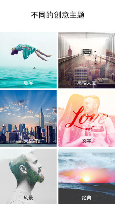 双重曝光是许多摄影师和摄影爱好者必玩的技巧,其神秘梦幻的视觉效果,让人常常沉迷其中,但往往也对个人技能和设备有所要求。而这款简洁小清新的Blend Editor,则不要求你有专业技能,也不需要复杂的操作。你只需要简单地动动手指,就可以创造出双重曝光的特效啦。 只需3个步骤: 1. 输入 – 从自己的相册或者我们的美图相集里,选择底层和顶层照片; 2. 选择 – 滑动预览,并选择最佳的混合模式; 3. 保存 – 可保存到相册,或分享到朋友圈、QQ空间、Instagram、Facebook等。 强大功能: - 5套精心挑选的主题美图:高楼、天空、悬浮、文字和风景 - 大量混合模式,可实时预览 - 轻松调整融合程度,呈现最佳效果 - 滑动即可交换底层和顶层照片的位置 - 简洁明了、操作简单的交互设计 赶紧下载体验吧!