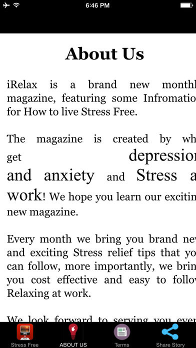 iRelax - Art of Stress Free Living is a wonderful new addition to the magazine world. Every month we update exciting new Stress Tips which are easy to follow. We hope you join us for every new issue of iRelax - Art of Stress Free Living. Get started today and download the first issue free for a limited time only! ------------------------------------------------------------------------------------------------------- The terms of subscription: - Title of publication: iRelax - Art of Stress Free Living - Free trial for 7 days then $1.99/£1.49 per month per active subscription - Length of subscription: 12 months with 1 magazine delivery per month - Price per issue is $1.99/£1.49 - Payment will be charged to iTunes Account at confirmation of purchase - Subscription automatically renews unless auto-renew is turned off at least 24-hours before the end of the current period - Account will be charged for renewal within 24-hours prior to the end of the current period, and identify the cost of the renewal - Subscriptions may be managed by the user and auto-renewal may be turned off by going to the user's Account Settings after purchase - No cancellation of the current subscription is allowed during active subscription period - Any unused portion of a free trial period, if offered, will be forfeited when you purchase a subscription By purchasing a subscription or downloading an app you agree that you have read and accept Our privacy policy and Terms of Use