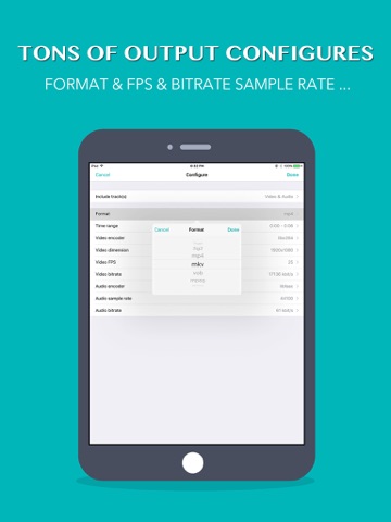 视频转换器 - 可以让您轻松转换各种视频格式。 其操作极其简单,且转换后的视频文件可以保存到您的手机中。 - 在手机本地内转换,无需网络 - 支持各种类型的视频(3GP,FLV,MP4,MOV,MKV,AVI,MPG,MPEG, MXF 等) - 支持各种类型的音频(MP3,AAC,WAV,AIFF,OPUS 等) - 支持指定开始和结束位置 - 支持从视频中提取音频 - 支持压缩减少视频文件的大小,以方便通过短信等发出 - 转换视频的同时可以设置保持原有的视频质量 - 提供高级模式: 可以指定视频比特率,任意分辨率,音频比特率,编解码器等 - 支持从 相册/专辑/Dropbox/iCloud/Google drive/One drive 等导入视频/音频; - 支持分享。 - 内置功能强大的视频播放器,可播放各种格式视频。 iConv - Video Converter app converts video or audio in various formats with simple steps and save file to your phone. - Converting locally, does NOT need network - Supports various types of videos (3GP, FLV, MP4, MOV, MKV, AVI, MPG, MPEG, MXF, and so on) - Supports various types of audio (MP3, AAC, WAV, AIFF, OPUS and so on) - Supports mp3 audio cover art (artwork) - Supports specify START and END with any position - Extract audio from videos, in MP3, AAC or other audio format - Reduce video file size to send out through SMS etc - Convert video while keep original video quality - Advanced mode to specify video bitrate, arbitrary resolution, audio bitrate, codec etc - Supports import video or audio from Camera Roll / Album / Dropbox / iCloud / Google Drive / One Drive ... - Supports Open In... or Share with other app - Supports application based integration. (Contact us)