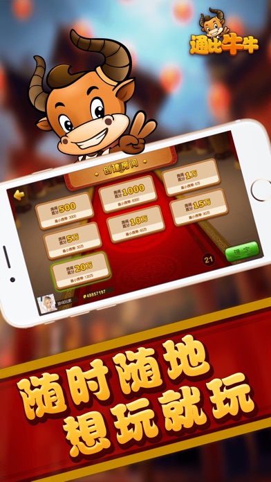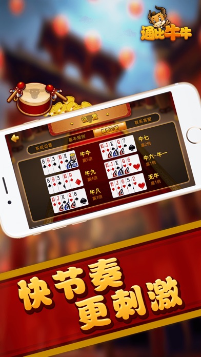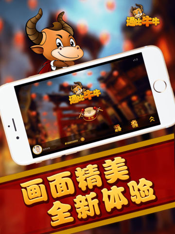 《通比牛牛》是一款游戏速度极快、考心算的牌类对战游戏,画面精美,有趣更好玩,娱乐随时随地开始,是睡前路上休闲小憩的最佳游戏! --- 游戏特色 --- 【自动整理最优牌型】 系统自动整理最优牌型,让牛牛更简单便捷; 【独创“癞子”玩法】 独创的大小王作为“癞子”百搭玩法,更多牛牛,更多刺激; 【全民混战,一决高下】 同桌玩家相互比较,你能在全民混战中脱颖而出吗? 【无庄家,不下注】 无须选庄,无须选择下注,真正的快速游戏,真正的更爽更刺激!