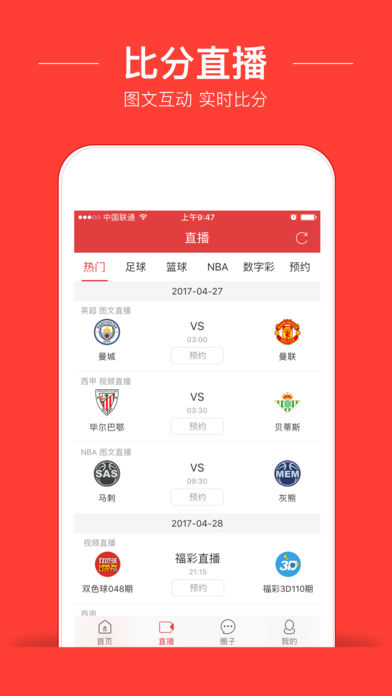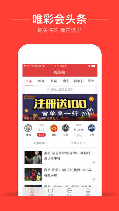 唯彩会-围绕彩票的体育综合平台。 【高清直播、即时资讯】唯彩会体育赛事直播覆盖NBA常规赛、季后赛和总决赛、英超、欧冠、亚冠、英超、西甲、意甲、德甲、法甲、中超、世界杯预选赛等主流热门足球、篮球赛事,同时提供各赛事赛程以及积分榜信息,以及足球、篮球精彩新闻前瞻,竞猜分析推荐等体育新闻资讯。 【唯彩会-专业体育彩票分析平台】 [专家云集] 唯彩会入驻了众多足球、篮球专家,足球名嘴丁伟杰、美女足球记者嘉欣、美女足球主播杜莹莹、名家何延国等陪您边看直播边聊球。 [体彩预测分析] 平台入驻了众多足球、篮球竞彩专家,对五大联赛、欧冠、亚冠、英超、西甲、意甲、德甲、法甲、中超世界杯预选赛等热门赛事进行独家分析,命中率极高。 [比分数据] 提供各大赛事实时比分、滚球数据、完场比分、各大联赛赛程安排; [指数] 提供百家赔率公司亚盘、欧赔、大小球指数,专业可靠实时同步; [大数据] 统计各大赛事历史相同盘口数据,分析胜平负概率; [盘王竞猜] 竞彩高手汇聚,免费参与,边看直播边玩球,还能获大奖! 唯彩会,围绕彩票的体育综合平台,致力体育直播,为懂球的、热爱球的朋友们提供优质免费的高清赛事直播,为竞猜爱好者提供足探、球探级别的比分、赔率数据,助你盈球! 唯彩会-专业的彩票资讯平台,彩票行业的资深从业者,为你带来彩票行业最新动向、犀利述评、调侃趣闻以及深度分析。特约双色球、大乐透、福彩3D、排列三、七乐彩、时时彩、七星彩、11选5、排列3、排列5等各类数字彩专家,对各种数字彩票进行专业解读和预测,配合走势图表和数据分析,让彩票有章可循。
