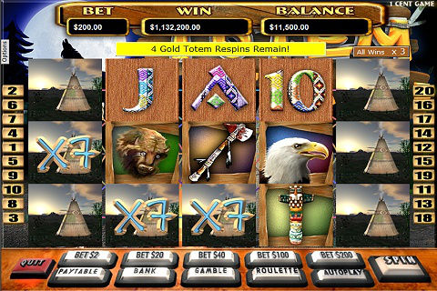 The Totem smiles upon you four times as you accumulate great wins in this much acclaimed game. Howl at the moon as you win during the triumphant Dreamcatcher Feature. Lock in your Gold Totems for a chance to cover all reels with wildcards. Top it off with the Mystical Totem feature - where you can multiply your entire win a massive 256 times! Are you that lucky? Try it now and see! There are 13 different symbols in this slot machine game, which pay on each of the paylines if a payline is active. The Golden Chief symbol is a scatter symbol, which will pay in ANY position on any line. The Teepee symbol is a wildcard which substitutes for all symbols except scatters. Any pays with the Teepee wildcard substituting are paid at SEVEN times the normal pay. Three or more Golden Chiefs appearing will trigger the Dreamcatcher Feature. All pays during the dreamcatcher feature are TRIPLED. This game is for entertainment purposes only. No real money can be won or lost. The odds of winning in this simulation are not the same as in real slot machines. Real slot machines are designed to make you consistently lose. You must be aged 18 (or 21 in some areas) to gamble. Pokie Magic supports responsible gambling and appropriate parental supervision.