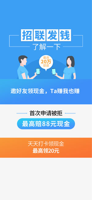 #信用贷款,分期购物# 招联金融一站搞定 招联金融——信用贷款免息分期借钱神器:凭身份证即可在线申请!1分钟放款!额度高达20万!日利率低至0.029%!下载招联金融APP更有APP专属借钱折扣! 【平台介绍】 招联金融:由招商银行与中国联通共同组建,银监会消费金融持牌机构。为您提供银行级安全、专业、便捷的现金借贷、分期消费服务。 【产品优势】 1、申请易:全程线上申请,无抵押,免担保,“刷脸”得额度,15秒出结果 2、速度快:极速放款,现金秒到账 3、利率低:借1000块日息低至2毛9 4、额度高:高达20万,额度循环使用 5、零费用:不使用不收取任何手续费 【产品简介】 ● 现金借贷:即“…
