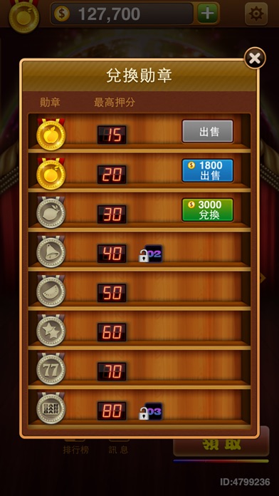 这是流行了30多年的经典老虎机游戏。 100%真机移植,送灯、小三元、大三元、大四喜、纵横四海、仙女散花、天龙八部、九莲宝灯、大满贯等多种特殊奖励等着你! 【游戏特色】 ▪ 原汁原味的画面与音效、真机的算法和玩法! ▪ 独创的勋章买卖系统,挑战无极限! ▪ 成绩,可查看出分率,分析机台状态! ▪ 游戏有爆机设定,打爆它会出现特殊效果,这正是你最辉煌的时刻! 【游戏规则】 1、倍率:苹果5倍率。右边的橘子、芒果、铃铛10、15、20三种倍率,左边的77、双星、西瓜有20、30、40三种倍率。两组倍率由上面的倍率LED灯决定。 2、猜大小:押中后会进入比倍模式。可选择“1-6”或“8-13”两按钮,只要猜对奖金X2倍。“倍倍猜”:猜大小前可选择左箭头或右箭头按钮,调整参与游戏的奖金数。 3、爆机:得分超过当前押注上限的400倍,则机台进入爆机状态。 4、勋章与押注上限:升级勋章,提高押注上限,升至铃铛勋章解锁2号机台,BAR勋章解锁3号机台。 5、特别奖励:1号、2号、3号机台分别有不同的特别奖励设定。有机会送灯、随机送灯、BAR送灯、小三元、大三元、大四喜、纵横四海、仙女散花、天龙八部、九莲宝灯、大满贯等。 简单的操作,公平的规则,丰富的玩法,多样的机台。怀旧与时尚相结合,童年的记忆翻涌而出。是您打发碎片时间的最佳选择!多机台多奖励,让您入手超快,中奖超High! 【联系我们】 官方微信号:bar52777 客服QQ:527770001 玩家交流群:14166487