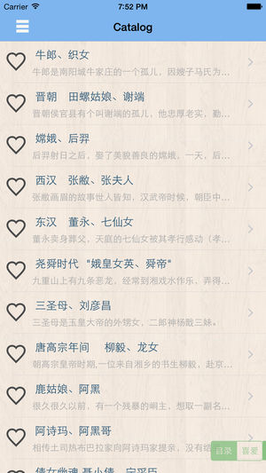 历代爱情故事收录了梁祝化蝶,牛郎织女,阿诗玛,项羽虞姬,三国吕布,诸葛亮,刘备,孙策,大乔,小乔,蔡文姬,隋唐李靖等100+个爱情故事 功能说明: 书籍目录 设置连续朗读所有章节的内容 调整字体大小 睡眠定时,在设置的时间点停止朗读内容,便于休息 夜间/日间模式切换 历史浏览记录 手势翻页效果 收藏喜爱篇章 繁简切换