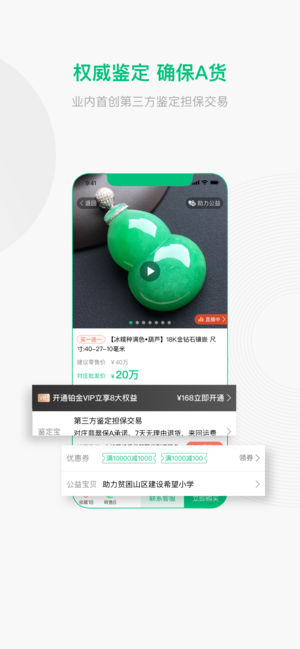 对庄翡翠是一手翡翠源头批发市场。严选源头工厂好货,提供第三方鉴定担保交易服务,为广大消费者带来超值、保真的一手好翡翠。 “翡翠皇后”欧阳秋眉教授盛赞“买翡翠,找源头,就在对庄”。对庄特色: 「翡翠直播」 在家就能买到缅甸源头一手货源,专业主播让你买的更实惠;更有低至0元捡漏玩法,参与捡漏还可赚红包。 「7天自由退换货」 收到货之后,你可以仔细把玩试戴,有任何不满意都可以直接退货,比在商场买更有保障。 「假一赔一百万」 “鉴定宝”担保交易,翡翠保A承诺保障,假1赔100万。 「资金物流保障」 只有当你满意并确定收货后,钱款才会经由对庄翡翠支付给工厂卖家,100%保障你的资金安全,比你自己…