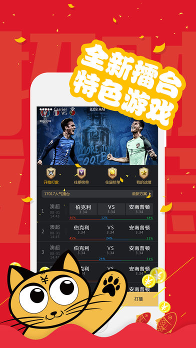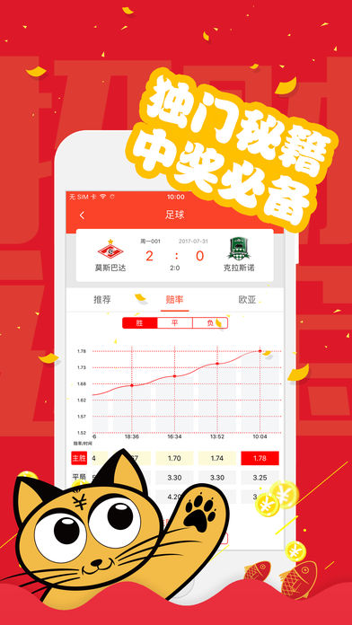 喜讯:不断有用户来电表示,跟踪学习竞彩猫专家推荐后斩获任九、十四场大奖,多种竞彩串关玩法更是得心应手。 竞彩猫APP,专为广大竞彩爱好用户提供竞彩、足彩、篮彩等体育赛事精准推荐。 1、竞彩猫--专做竞彩、北单和任九赛事的预测的APP,实名专家经验分析,百万用户买彩指导首选应用!看比赛不如看竞彩猫,不看比赛更要看 竞彩猫。 2、金球奖评委赫曼、国内一线解说员:杨毅、颜强、刘嘉远、魏翊东、朱彦硕;还有彩票培训师:曲昌春、杨天婴、杨澍、单鹂等诸多高手。 3、赛前出票晒实单,多年实战经验的专家指导用户如何购买;赛后经典场次复盘,告知用户输赢关键在哪里。 4、竞彩王,专家孵化器,简单容易好上手,只要你够准,只要你够红,下一个专家就是你! 5、我们还拥有独门指数产品--竞彩猫指数,捕捉冷门赛事利器。通过对全球可参考性公开交易市场的数据进行加权复合计算得出每场比赛的相应 数据走势图,用科学的分析工具和图表指导彩民避开热门玄机,挖掘冷门再出击! 6、免费专区、中欧对比、竞彩赔率回查、比分直播等小工具,不花钱也能玩赚竞彩。 想中奖?上竞彩猫APP!