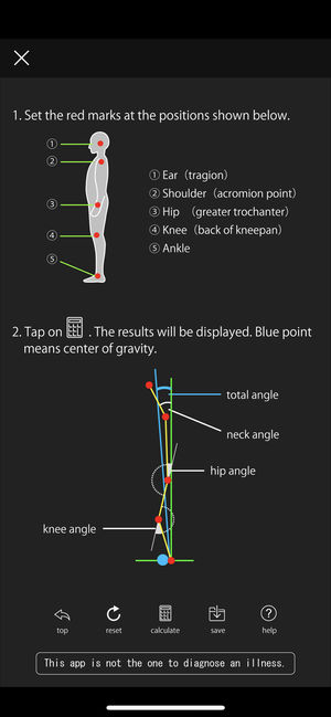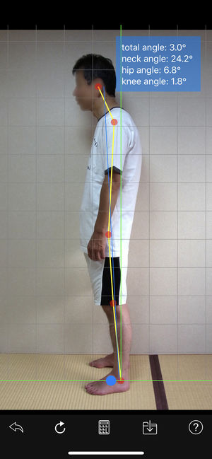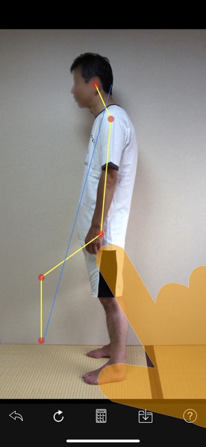 Would you like to check your posture ? If the line which five points that are an ear, a shoulder, a hip, a knee and an ankle make is straight, your posture is very good ! 【Usage】 Step1. Prepare a photograph of a whole body which took from horizontal direction. Step2. Move the red marks to the posit…