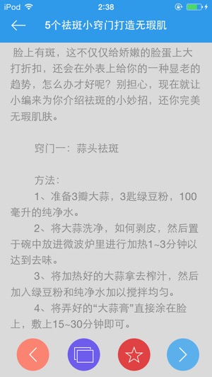 *限时6元促销,原价18元,欲购从速!* 祛斑小窍门大全,做您贴心的祛斑助手 应用包含以下内容: 美白祛斑食谱 去除黄褐斑秘方 祛斑小窍门打造无瑕肌 中药祛斑秘方...