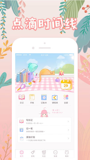 记手帐,写日记,记账便签备忘录,生理经期记录。贴心的记录助手,亲密的生活伙伴。 热闹有爱的粉粉社区,交友聊天、兴趣话题讨论、分享情感的空间,期待您的加入。 【手账】好玩有趣的电子笔记记事本。 【日记】文字图片、录像视频、声音音频,时间轴点滴的形式记录生活的每一个瞬间。 【密码锁】保护私密记录,防止隐私泄露。 【同步备份】珍贵的记录数据网络备份不丢失。 【记账本】管理日常开支、预算费用和账单账本。 【便利贴】快速添加便签,随时记录想法和事务。 【小秘密】大姨妈月经期例假生理期计算,健康贴心蜜友。 【纪念日】生日周年纪念、倒数日,提醒你重要有意义的日子。 【计划表】倒数提醒,为你安排好任务计划。…
