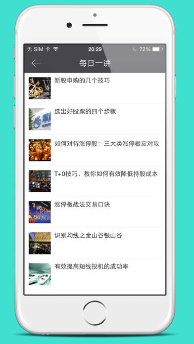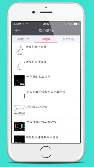 初级教程:基本知识,K线图,技术指标--新手学习精选资料 进阶教程:经验实战,实盘教学,看盘选股,买入卖出 每日一讲,今日股市:午评收评,精华内容学习。 股市百科:名词解析,百科大全。