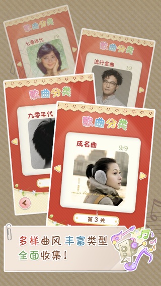 最用心、最好玩的记歌词游戏来了!!! 你喜欢音乐吗? 你是歌词达人吗? 你想要参加“我爱记歌词”吗? 不用报名,手机上就可以啦? 一边听好歌,一边记歌词,大家K起来!!! ----------------------------------------------- 游戏支持:GameCenter iPhone5 内容简介 最全面的内容:精心挑选时下热门的我爱记歌词、中国好声音、我是歌手、直通春晚、挑战麦克风等一系列音乐节目中的好歌精心打造,不比歌喉、不比长相,只要记得歌词,就能玩的High。 最简单的操作:挑选你认为正确的歌词,按照顺序点击,即刻过关,操作简单,欢乐不减。 最快捷的分享:完成游戏后,可以分享到新浪微博、腾讯微博、人人网、QQ空间、微信,邀请好友一起分享游戏的欢乐 最美好的回忆:让那些曾经打动你我的字字句句,伴随着动听的歌曲,在简单有趣的游戏中再次浮现,不管是任何年代、何种歌曲都可以在我们设计的游戏关卡中,找到共鸣。 游戏模式 过关斩将模式:一共分为九关,分别是新春贺曲、中国好声音 、成名曲、校园民谣、摇滚之夜、流行金曲、七零年代、八零年代、九零年代一共九个分类,让你尝试不同的类别,不同的风格,总有一款适合你。 一站到底模式:此模式中,你将挑战不同曲风、不同类别的歌曲,将考验你的应变能力和记歌词的范围,相信一定能够激发你记歌词的热情,让我们欢快的唱吧。 一边听好歌,一边记歌词,大家K起来!!!