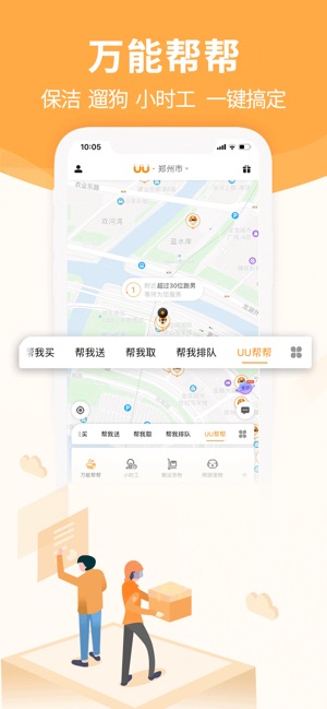 【产品简介】 UU跑腿是国内最快的同城速递服务平台,同城快递,同城闪送,叫UU跑腿,专人直送,60分钟送达全城!24小时在线为用户提供服务。UU跑腿给您提供最优质的快服务。 【产品特色】 当你有急件需求时,UU跑腿平台将自动计算出离你最近的跑男,将您的订单信息推送给跑男,跑男会第一时间上门取货,把货物送达目的地。同城速递,10分钟上门取件,59分钟送达全城! 【服务项目】 uu代买:7*24小时,让您足不出户,购遍全城! uu代送:专人专送,59分钟送达! uu代排队:随时随地找uu,让您省时省心又省力! uu帮帮:日常保洁、临…