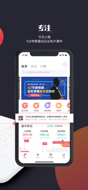 [选股宝]选题材抓龙头,就用选股宝 专注A股市场题材选股,主题投资工具开创者 快:重大新闻推送快枪手,97%的消息快于同类软件,快人一步,便是机会。 消息推送比香港记者更快。 稳:华尔街见闻A股核心团队为你梳理投资逻辑,拨开市场迷雾,选股不再烦恼。 超强的资料整合与甄选让你免受杂乱信息困扰。 准:数百位实力基金操盘手、分析师已开设专栏,为你的投资路保驾护航。 经层层考核后登陆的大V专栏,相比琳琅满目的投顾部队更能让你紧跟实力派作手。 —主题投资:梳理板块,锁定龙头 —化繁为简:复杂资讯,轻松秒懂 —急速消息:财经机会,唯快不破 —定制推送:去伪存真,专注所爱 [选股宝]——华尔…